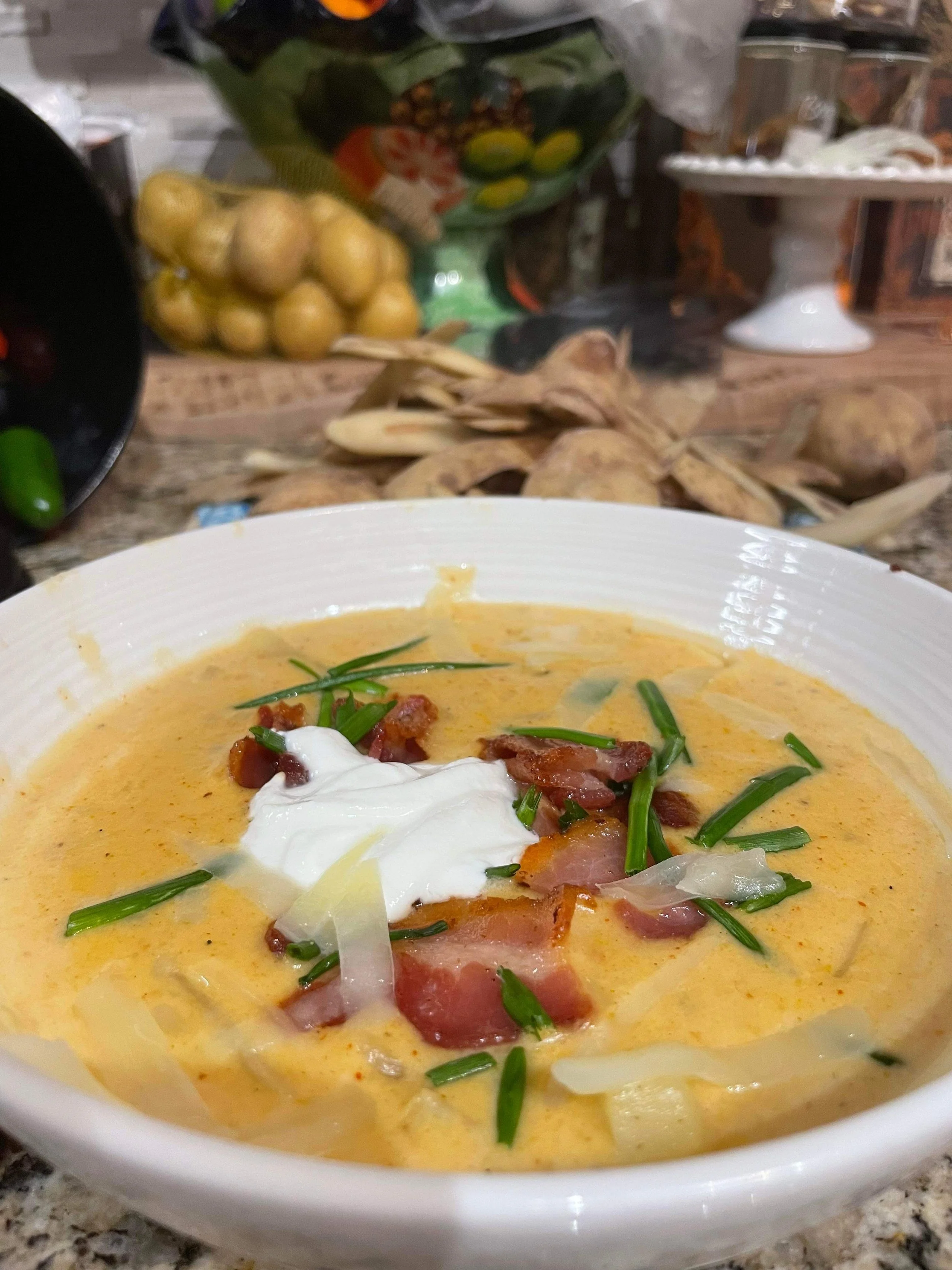 Top with additional sour cream, bacon, cheddar cheese, or chives. Then dig in, because it’s so good!!