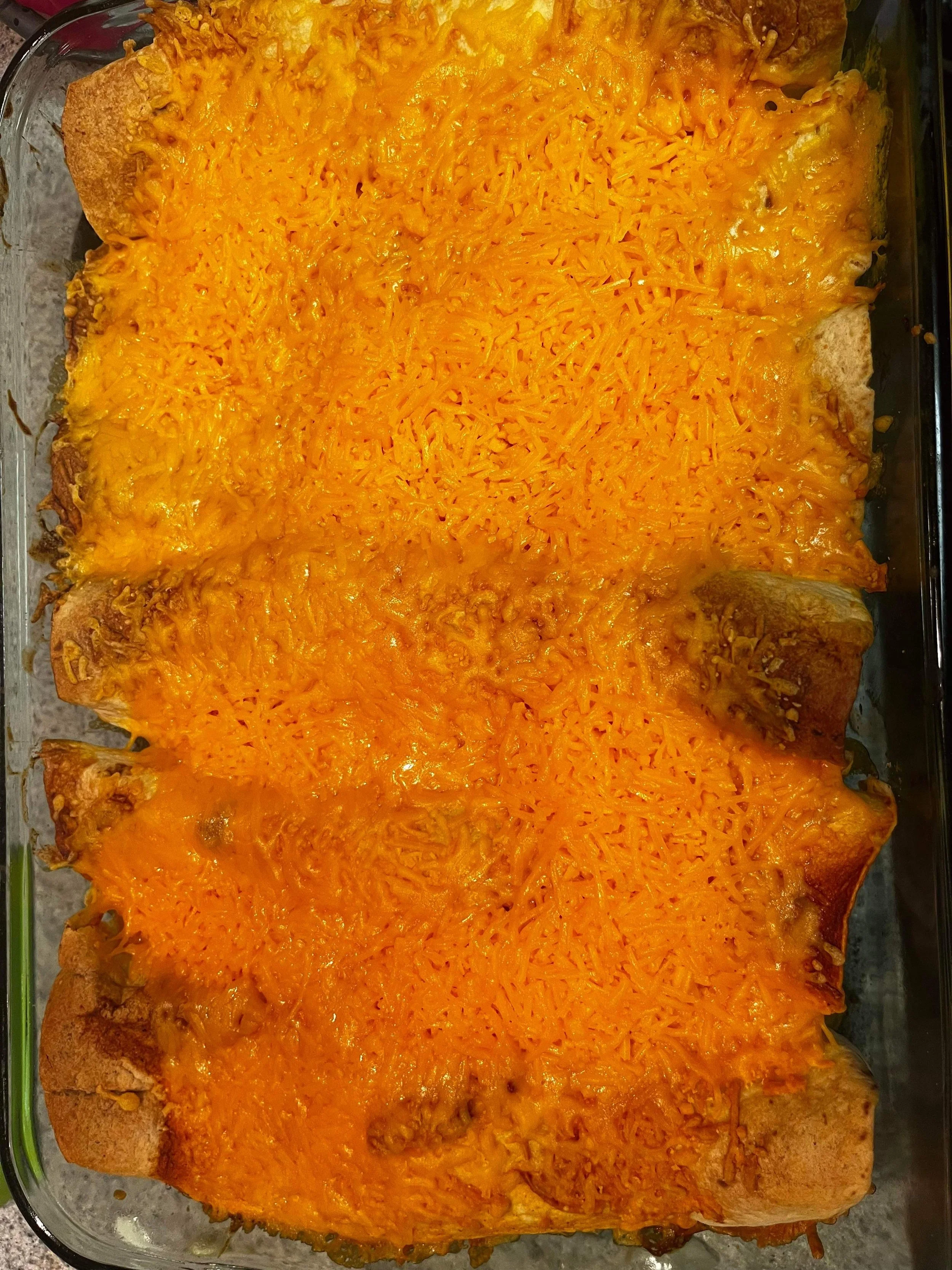 6 add tortilla put a little sauce in than mixture roll it up and go till it’s full probably will have 8 to 10 pour the rest of the sauce on top