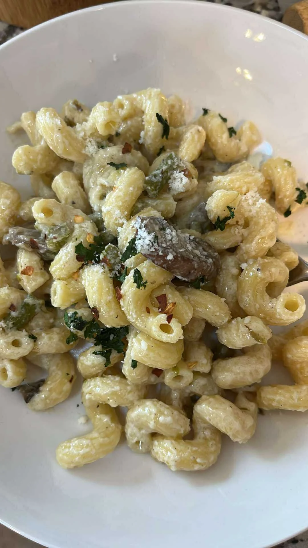 Garnish and Enjoy! Ladle the creamy pasta into bowls. If desired, sprinkle with freshly grated Parmesan cheese and a pinch of crushed red pepper flakes for an extra zing. Serve immediately and savor every delicious bite!