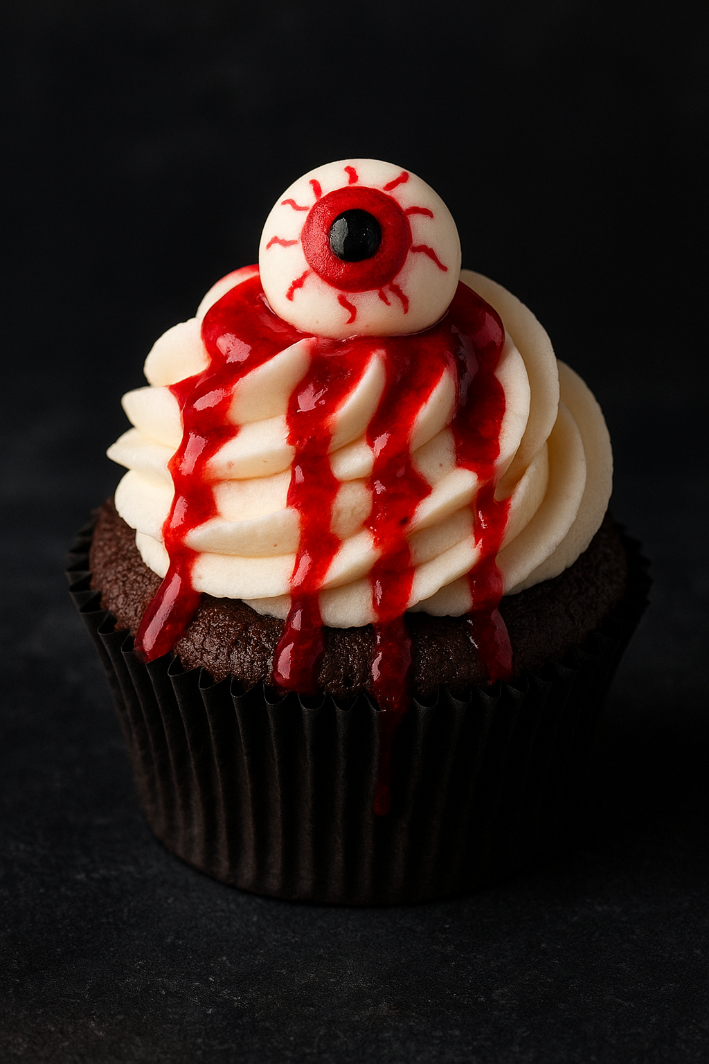 Add the “Blood” Filling: Cut a small well into the center of each cooled cupcake. Fill with jam, tinted with food coloring for extra drama.