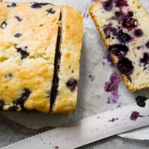 Ashton (@Justlikegranny) shared her version of Chocolate Chip Walnut Cookies and a copycat Lemon Loaf recently . Today she bring sin one of my favorite fruits, with this Blueberry Lemon Loaf with a sweet glaze topping.