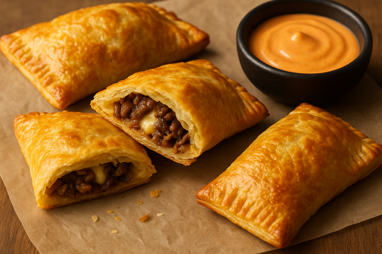 Savory Korean-style beef wrapped in flaky pastry with a creamy gochujang mayo. A handheld twist on classic bulgogi that’s crisp on the outside, juicy inside, and perfect for dipping