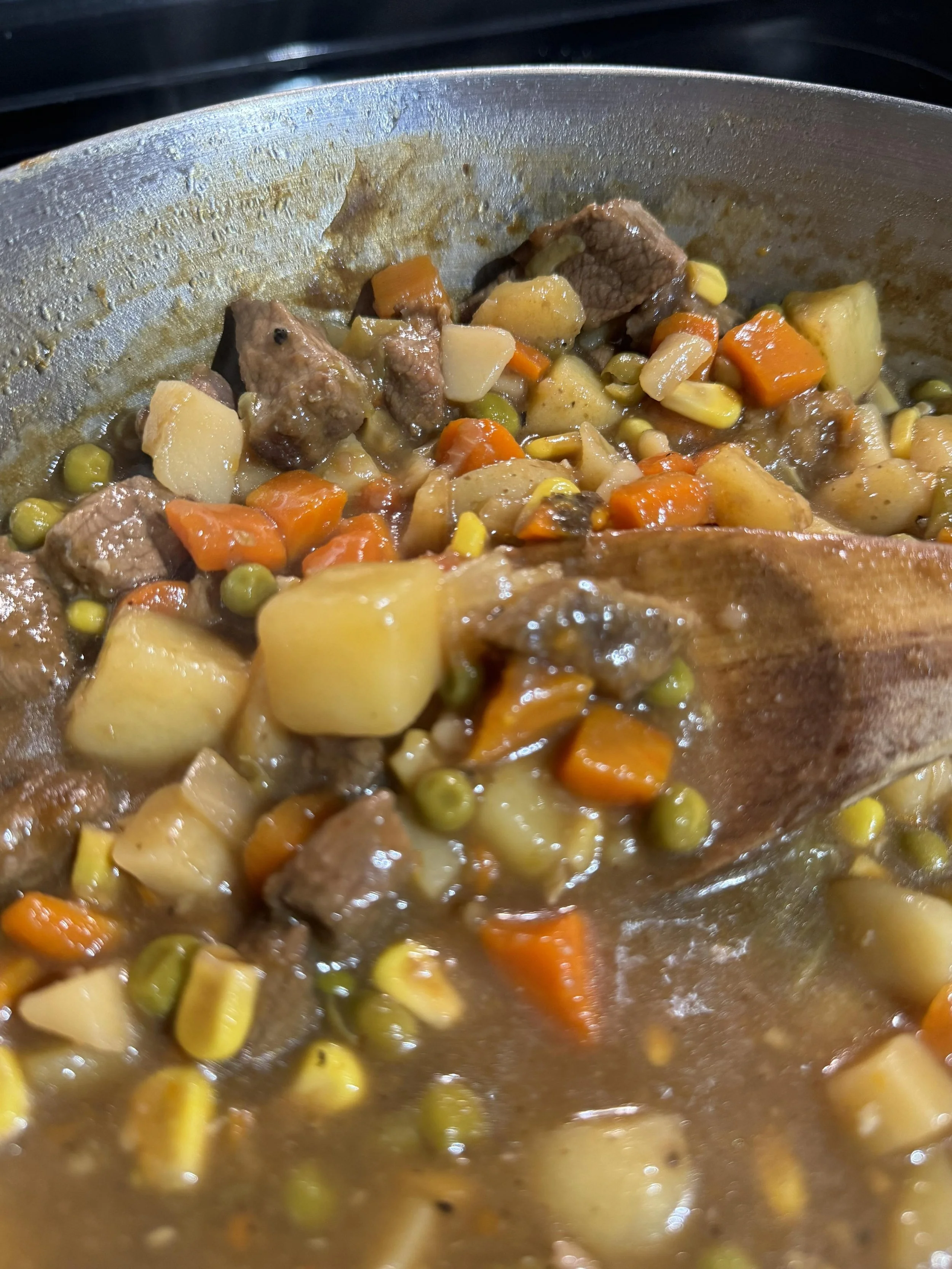 Simmer & Adjust: Continue simmering the stew, adding more broth as needed to reach your desired consistency. If the stew becomes too thin, you can thicken it by stirring in an additional tablespoon of cornstarch mixed with a bit of cold water.