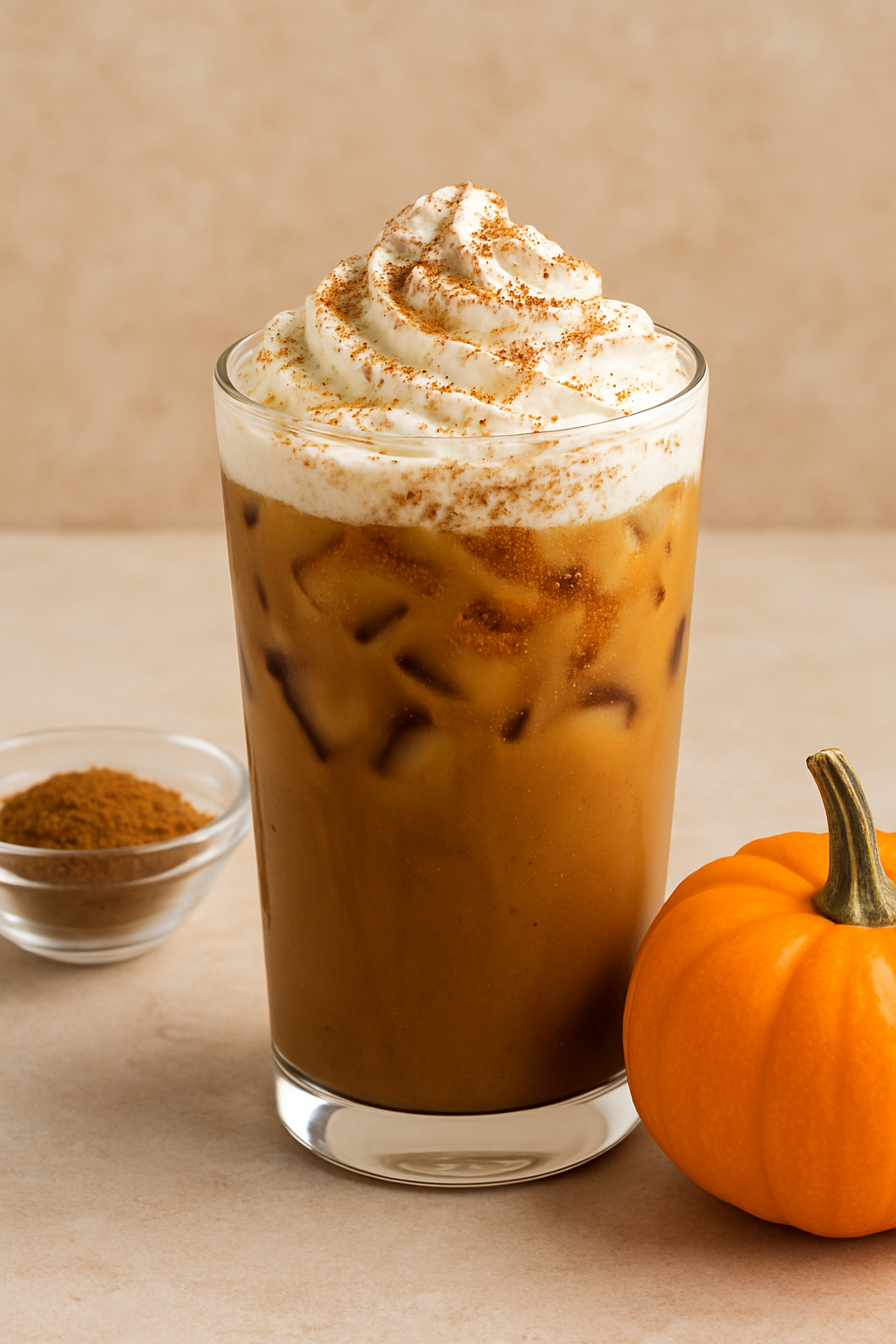 A refreshing iced coffee flavored with cozy homemade pumpkin spice. Customize the sweetness, creaminess, and toppings to make it your own fall-inspired drink
