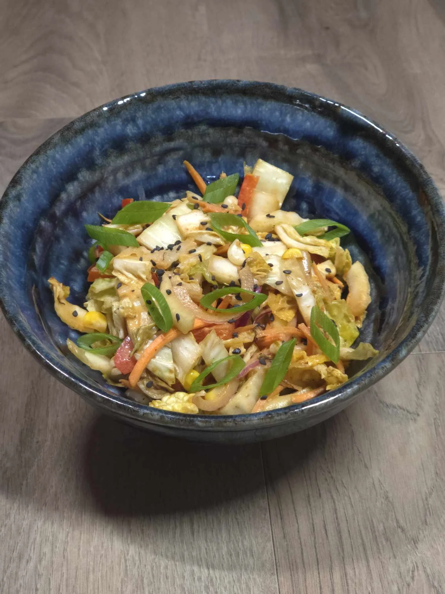 1 medium head Napa cabbage, about 2-2.5 lbs, feel free to substitute green, savoy, or purple