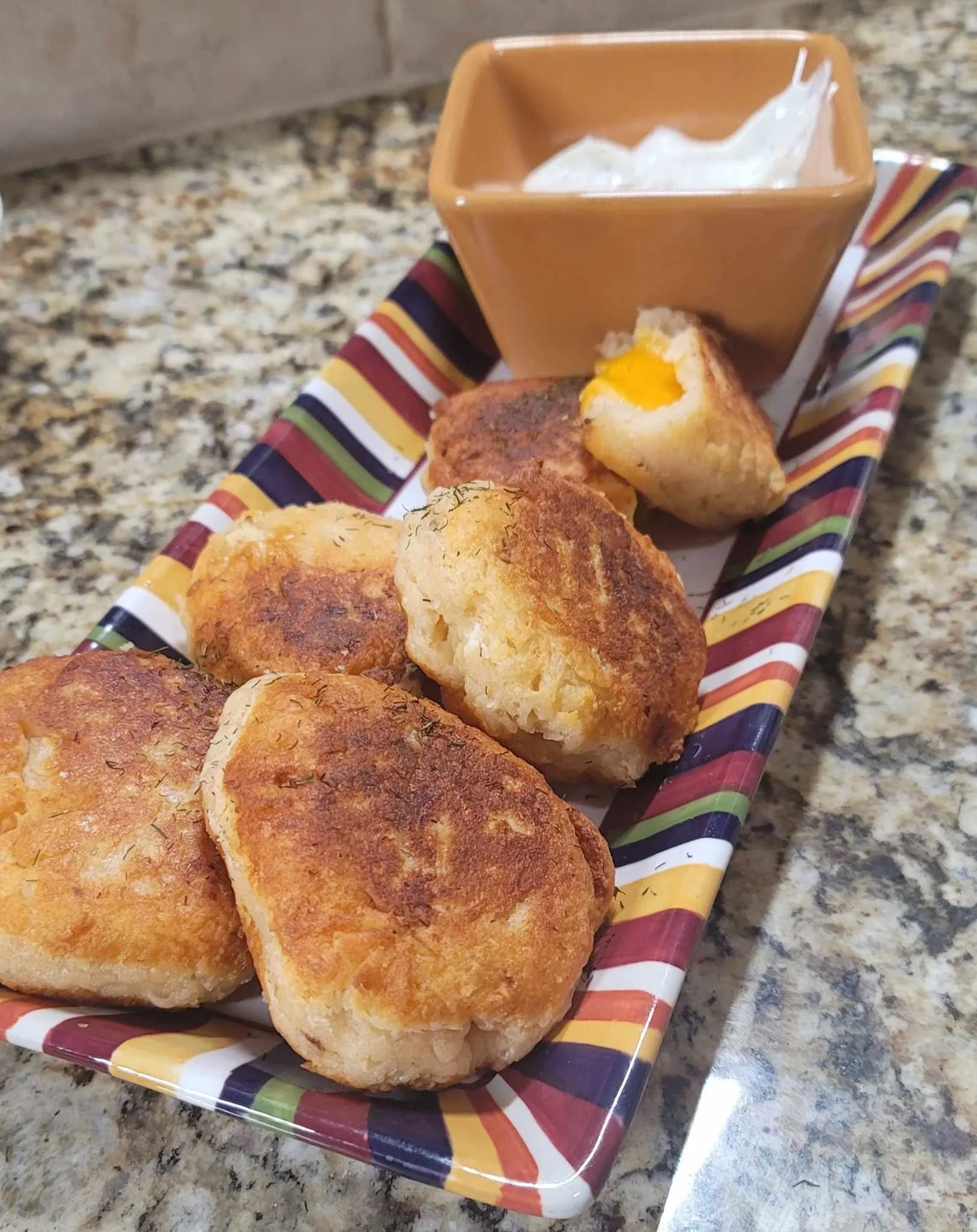 Transform your leftover mashed potatoes by creating cheese filled pancakes!