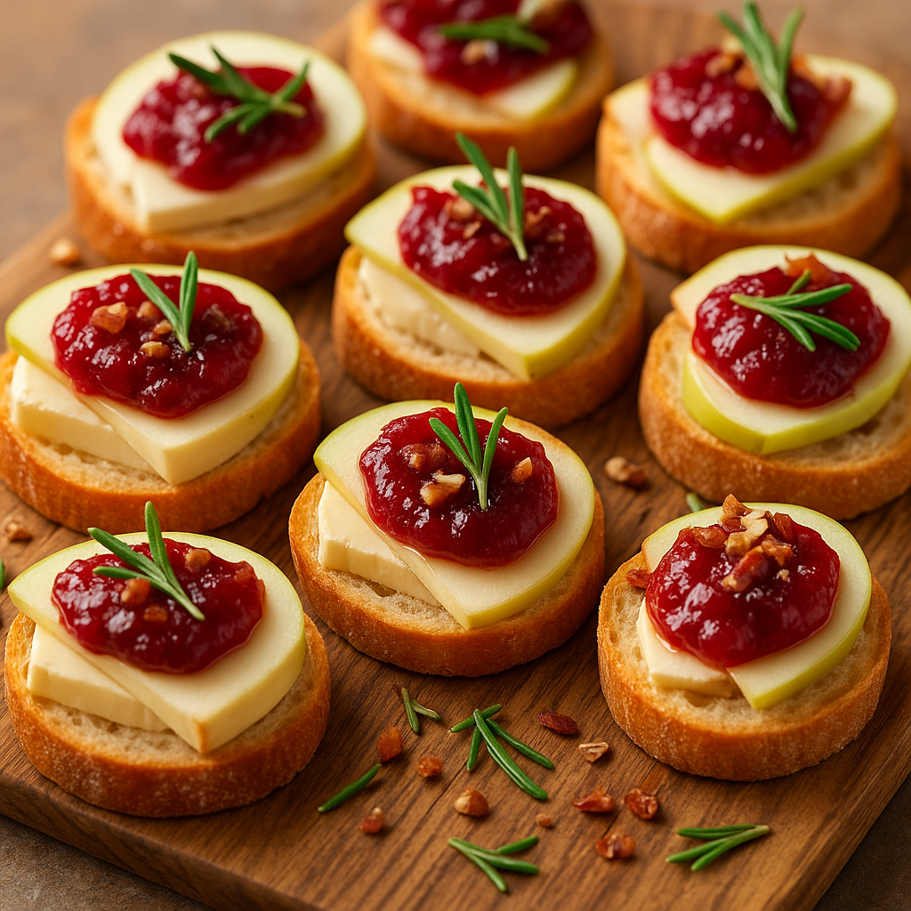 A simple and elegant appetizer with creamy Brie, crisp apple slices, sweet-tart cranberry, and fresh rosemary. Perfect for parties, holidays, or charcuterie boards.