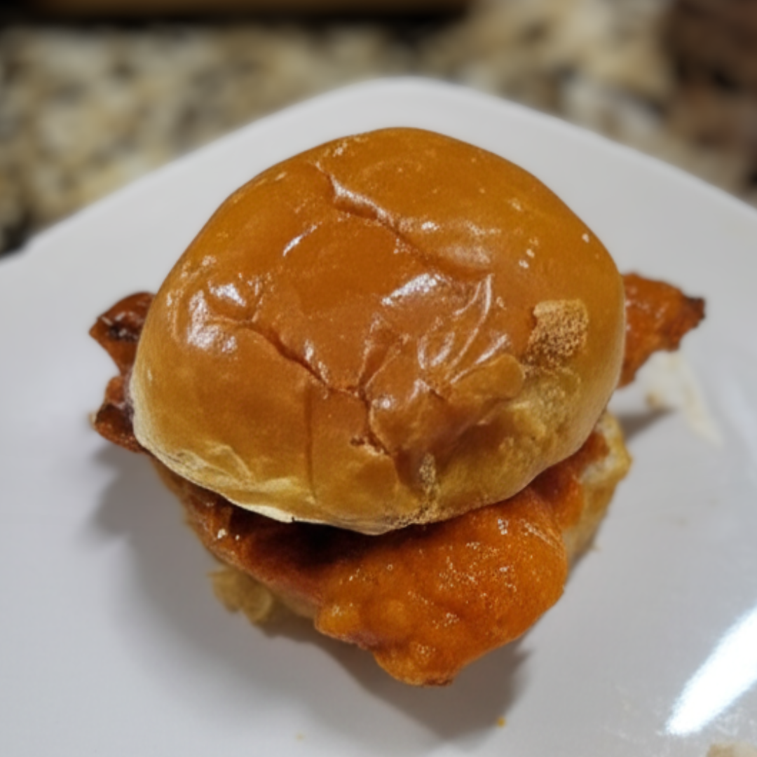 A bold, crispy, spicy sandwich made from one large chicken breast split into two cutlets, fried to golden perfection and coated in a tangy homemade buffalo sauce. Served on toasted buns with cool ranch and crunchy toppings.