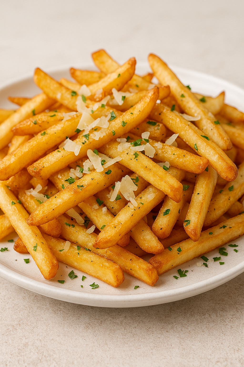 Crispy fries tossed in warm garlic butter and finished with melty Parmesan for a fast, satisfying snack or side