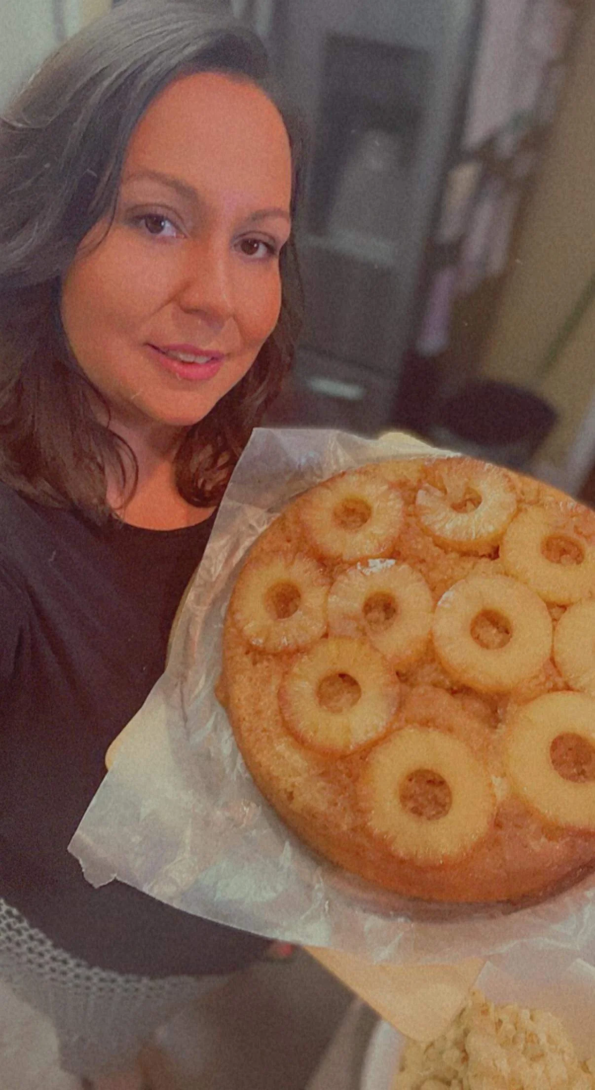 In a cast iron skillet on the stove, melt 1 to 2 sticks of butter, add brown sugar a lot !!! Cook until butter and sugar are melted, brown and bubbly