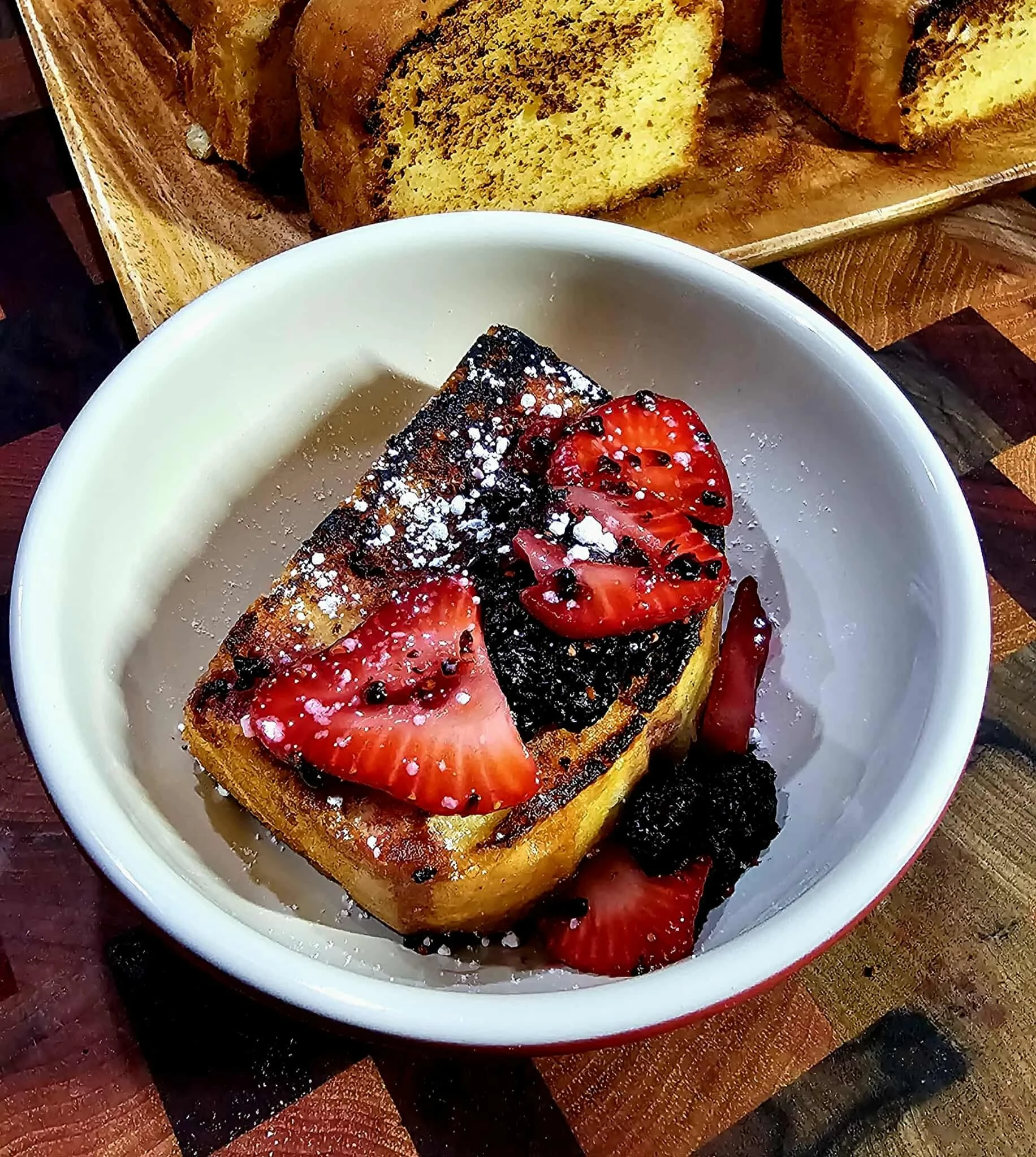Prepare the Pound Cake: If using a charcoal grill, prepare your coals for medium-high heat. For a griddle, preheat to medium-high. Slice the pound cake into 1-inch thick slices. You should get about 8-10 slices depending on the size of your cake. Lightly brush one side of each pound cake slice with melted butter or spray with cooking spray.