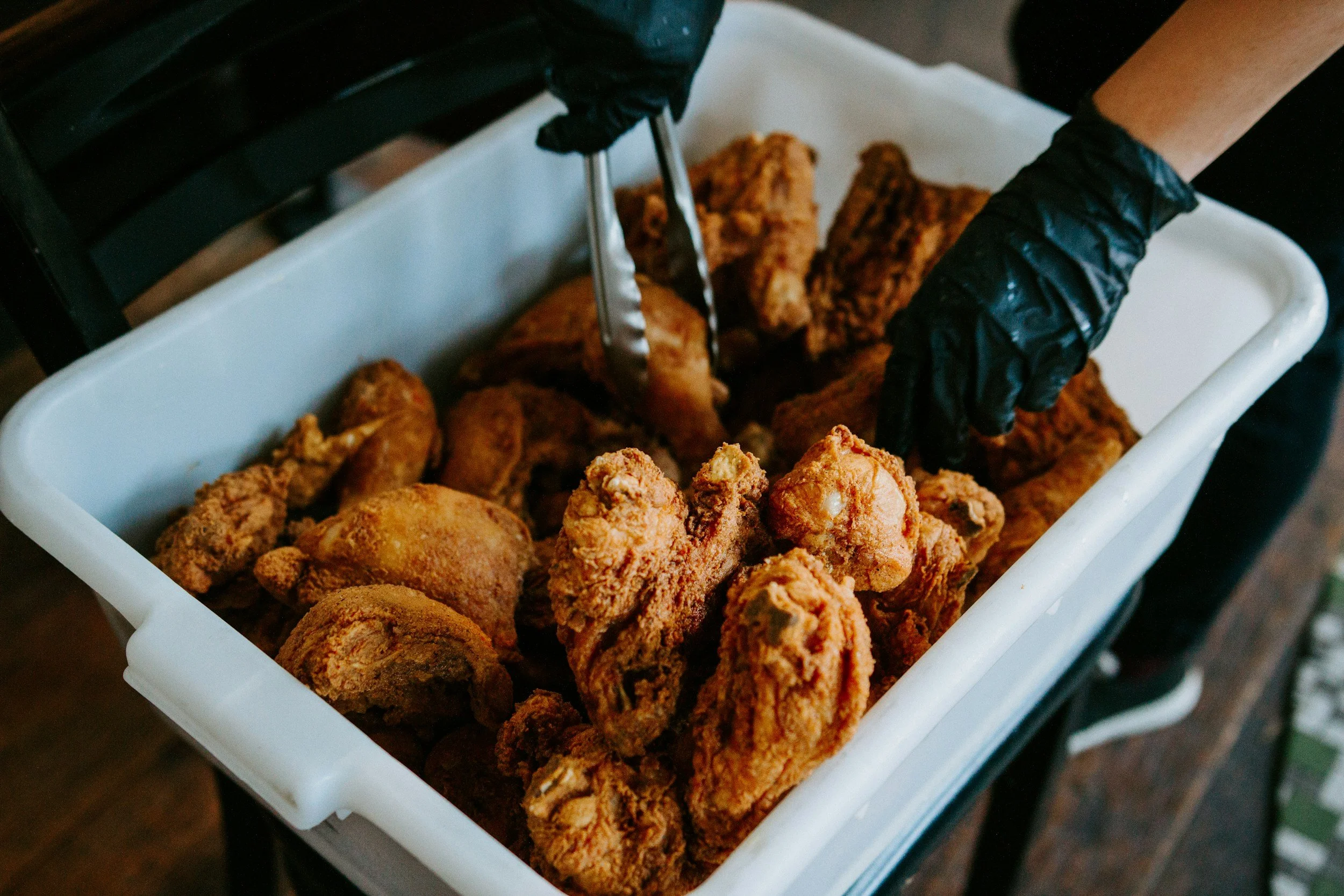 Your local grocery store doesn’t bother with the egg wash to fry chicken, its about the seasoning. This covered dutch oven replicates their professional pressure frier, to cook the chicken quickly. This is also the same method that KFC uses, but that’s a different recipe.