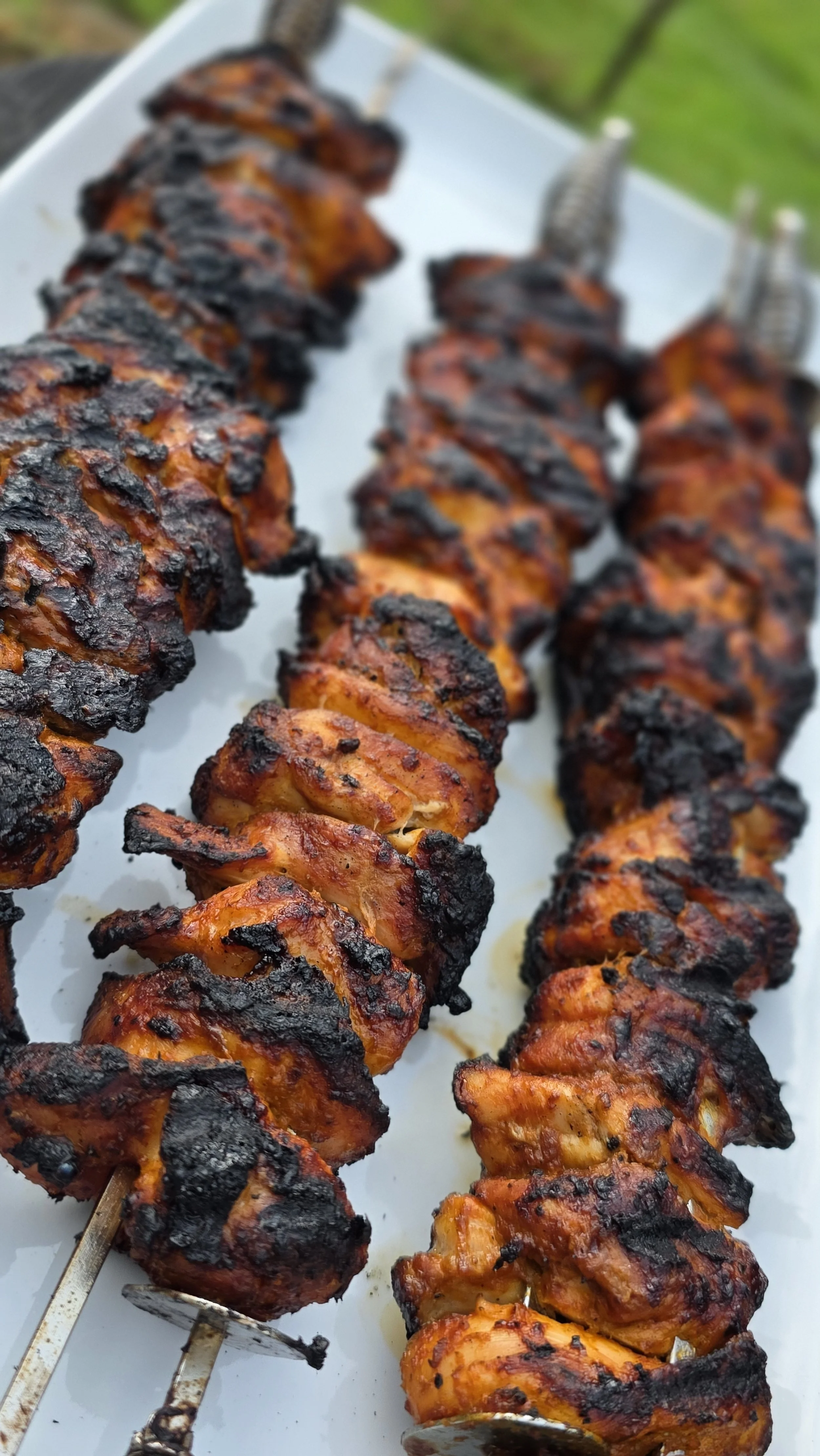 Special Equipment: Kamado-style grill (or other outdoor grill), Wooden or metal skewers