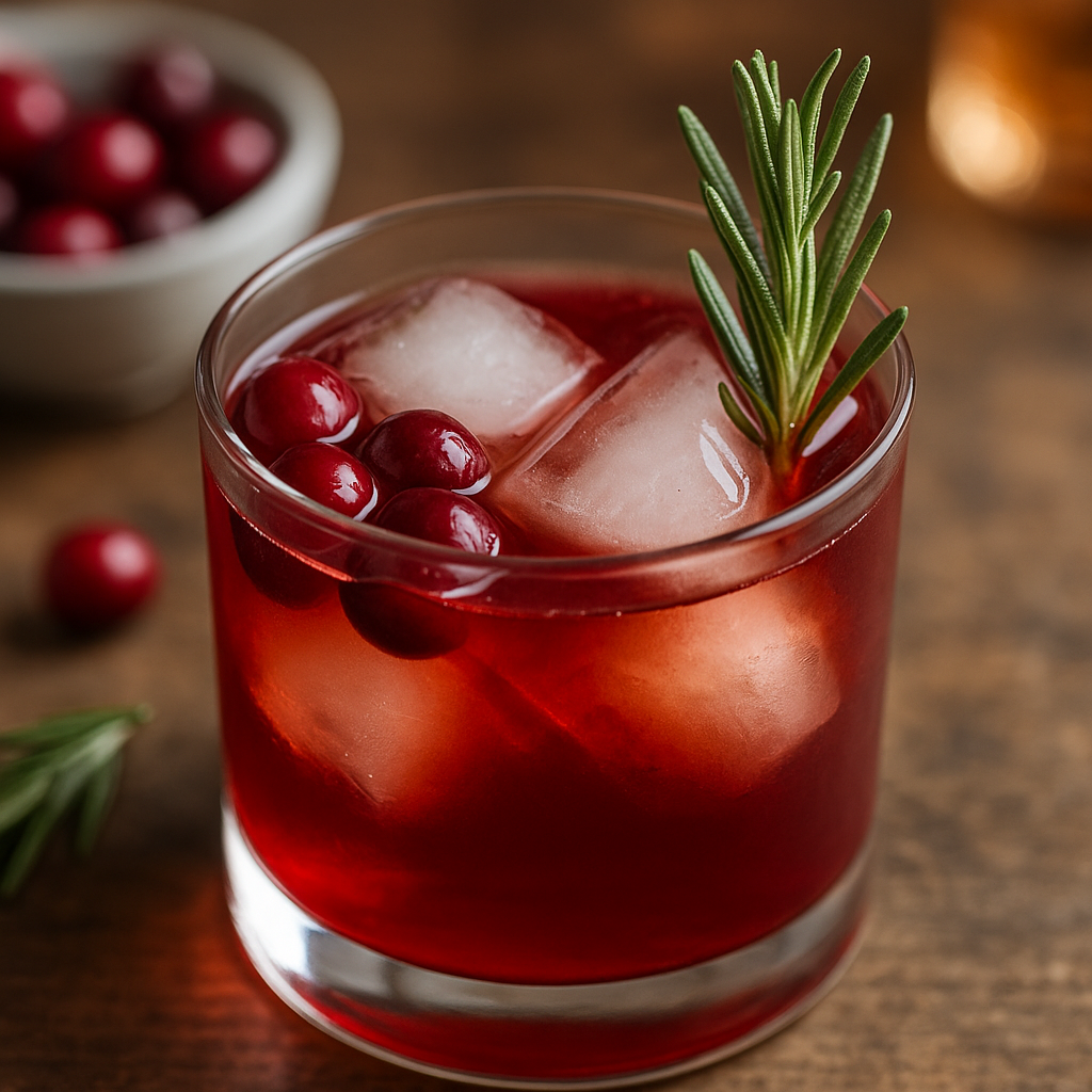 Garnish with a rosemary sprig and drop in a few fresh cranberries.