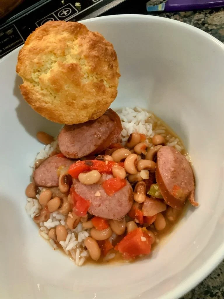 A comforting Southern favorite made easy! This hearty dish features smoky sausage, black-eyed peas, and zesty tomatoes simmered with savory spices, then served over rice. Perfect for New Year’s or any day you need a warm, filling meal.