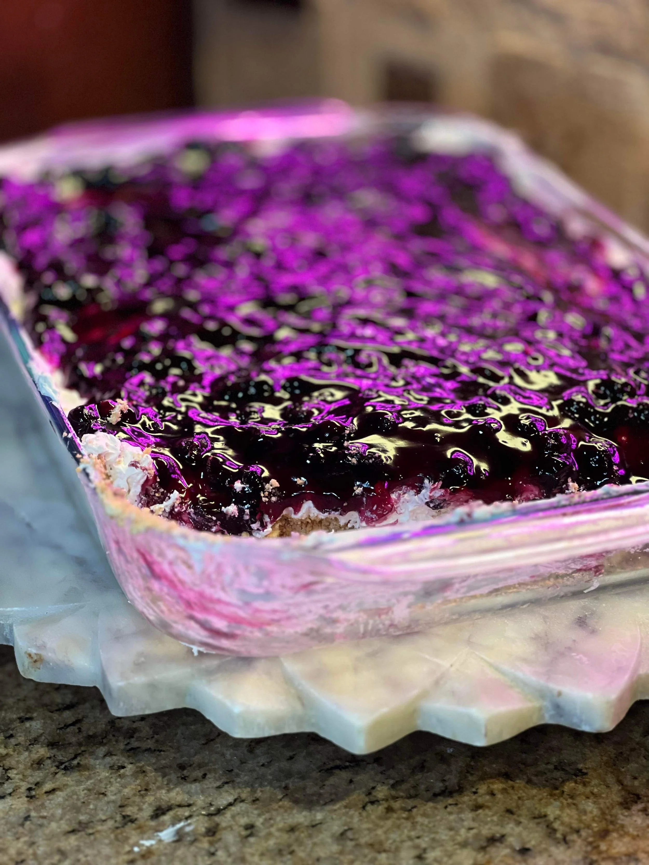 Carefully spread on the blueberry pie filling. Chill for at least 6 hours before serving.