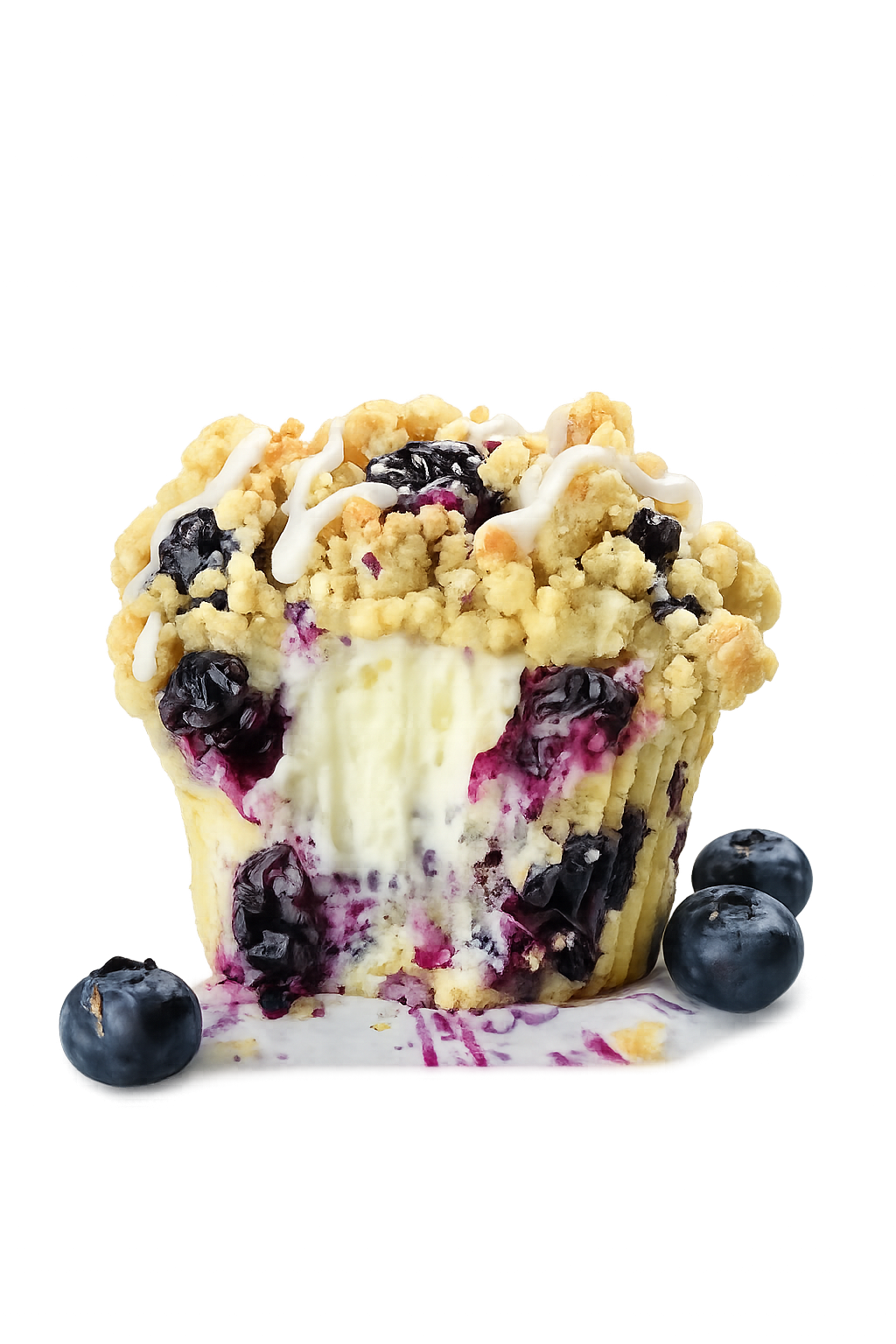 Soft lemon scented muffins filled with a sweet cream cheese center and bursting with blueberries. Finished with a buttery brown sugar streusel for a bakery style muffin with bright citrus flavor and a tender crumb.
