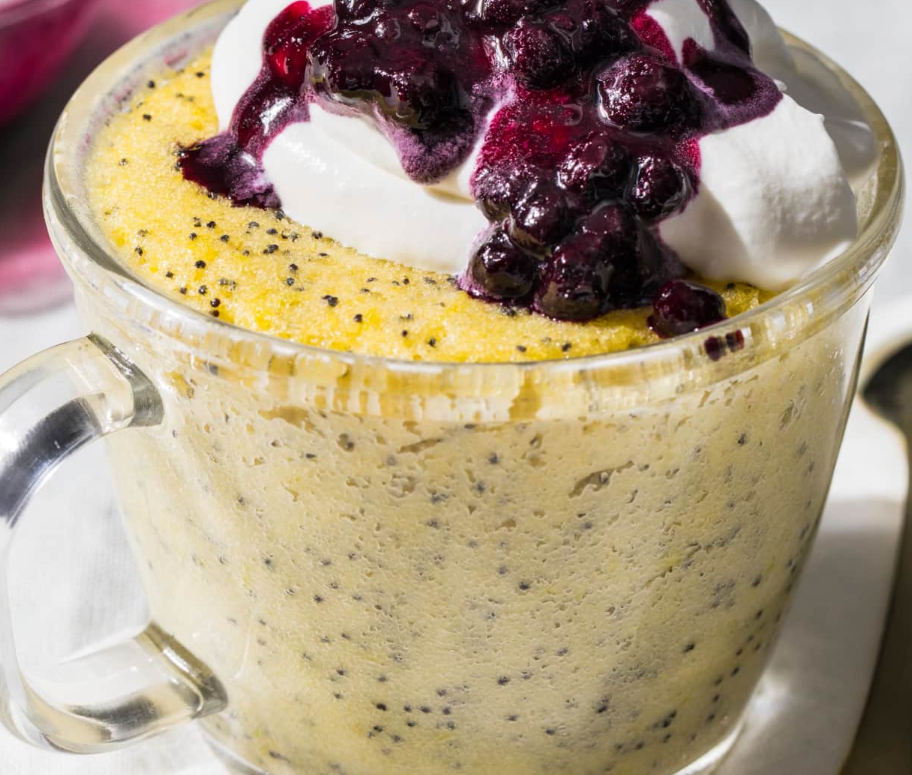 Whisk 3 tablespoons all-purpose flour, 2 tablespoons sugar, 2 teaspoons poppy seeds, if using, 1½ teaspoons grated lemon zest, ¼ teaspoon baking powder, and ⅛ teaspoon table salt together in bowl; set aside. Microwave 2 tablespoons unsalted butter, cut into two pieces in 12-ounce mug at 50 percent power, stirring often, until melted, 1 to 2 minutes. Add flour mixture, 1 egg, ½ teaspoon vanilla, and 2 teaspoons lemon juice and mix until smooth and well combined (being sure to scrape corners of mug).