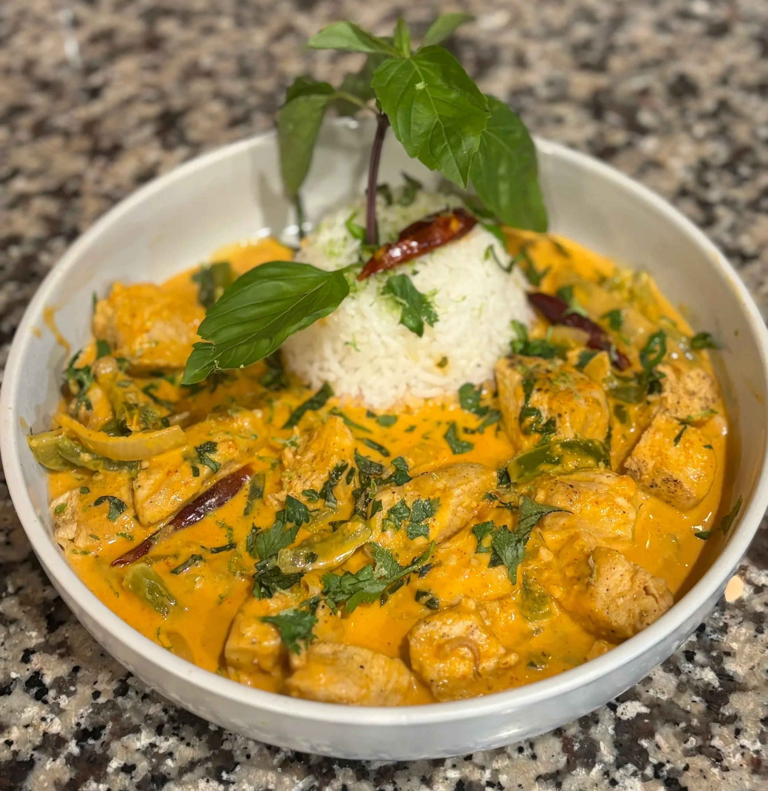 Serve Garnish with fresh herbs and serve over jasmine rice or rice noodles. ⸻ Tips