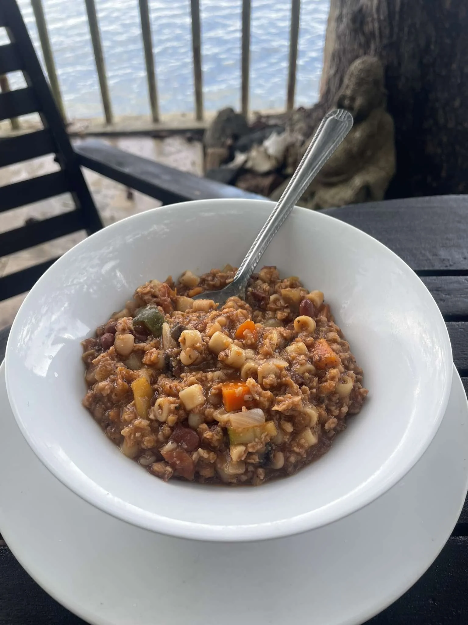 A hearty, vegetable-packed Italian soup made with ditalini pasta, beans, meatless crumbles, and aromatic seasonings. This vegan version delivers rich, smoky flavor and comforting textures, perfect for a filling meal.