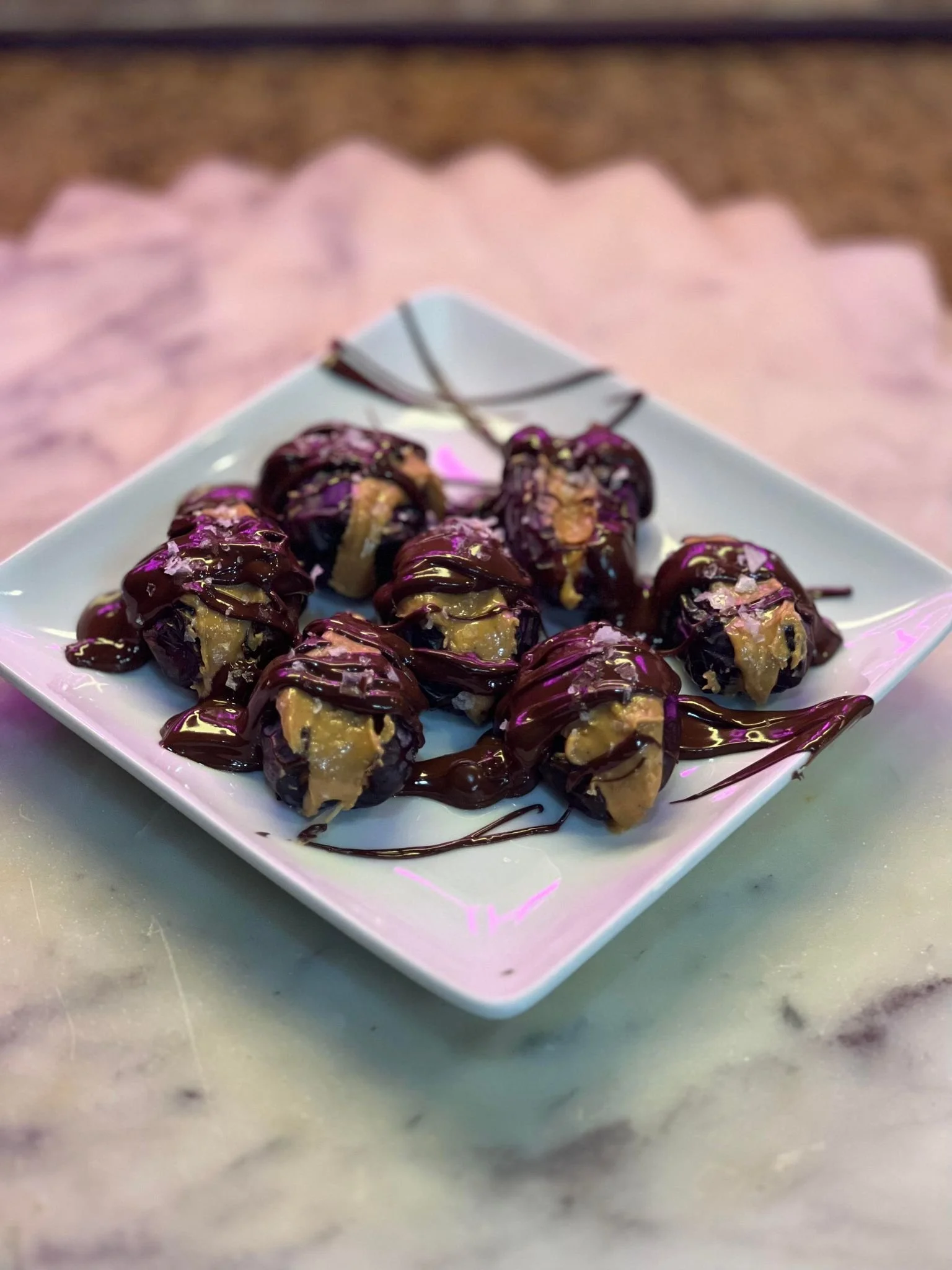 * Sprinkle the melted chocolate with chopped peanuts and sea salt (if using). Place in the freezer for at least an hour and enjoy frozen.
