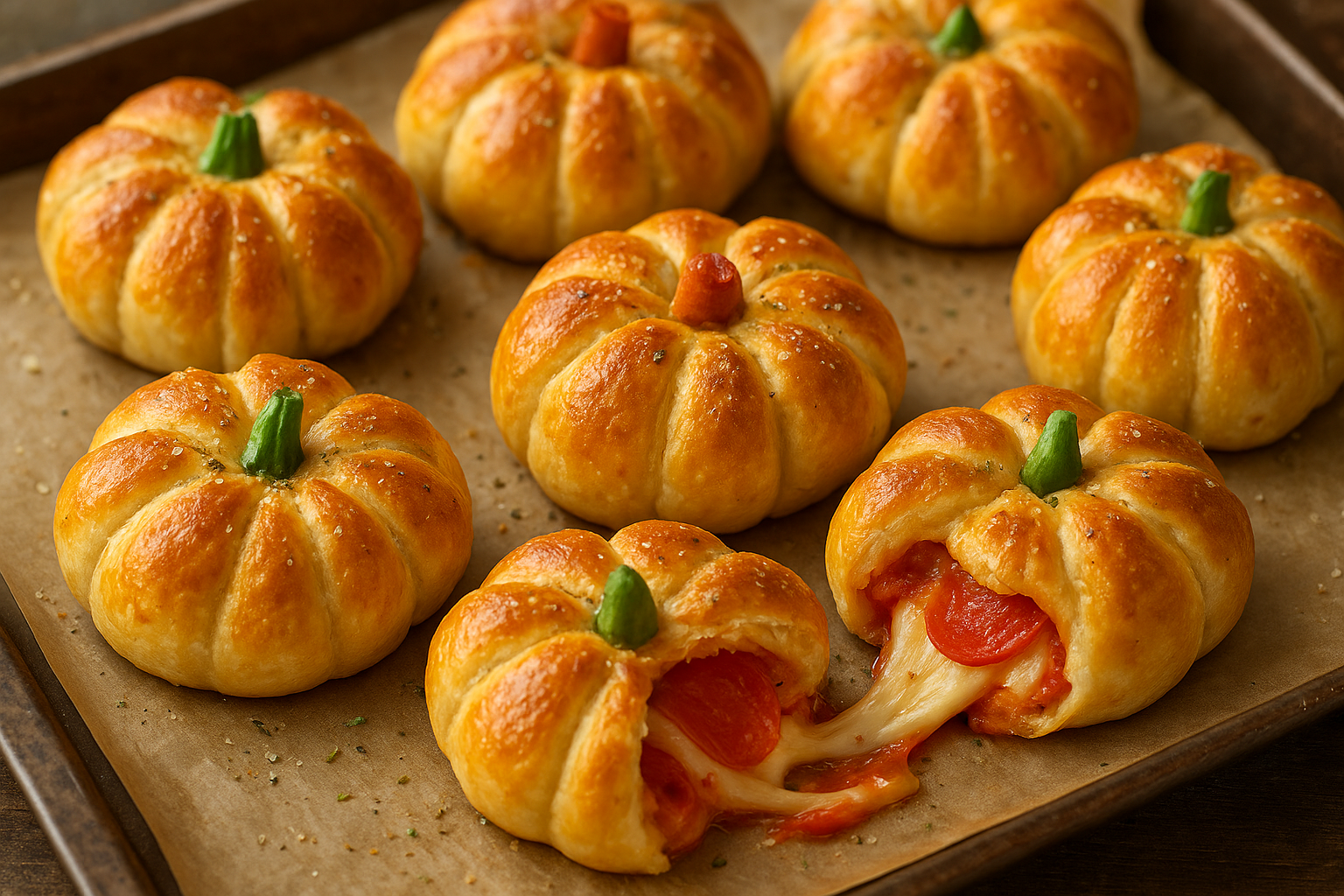 These pepperoni pizza bombs are crispy on the outside, cheesy and saucy on the inside, and shaped like little pumpkins. Perfect for parties, snacks, or a fun dinner twist. They bake up golden and gooey with melty mozzarella and bold pepperoni flavor in every bite.