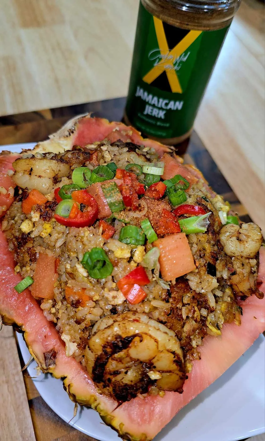 Sweet, savory, and packed with flavor! This PinkGlow Pineapple Garlic Shrimp Fried Rice brings a tropical twist to your plate with sweet and juicy pink pineapple, garlic, jasmine rice, shrimp, and jerk seasoned veggies. Who’s ready to dig in?