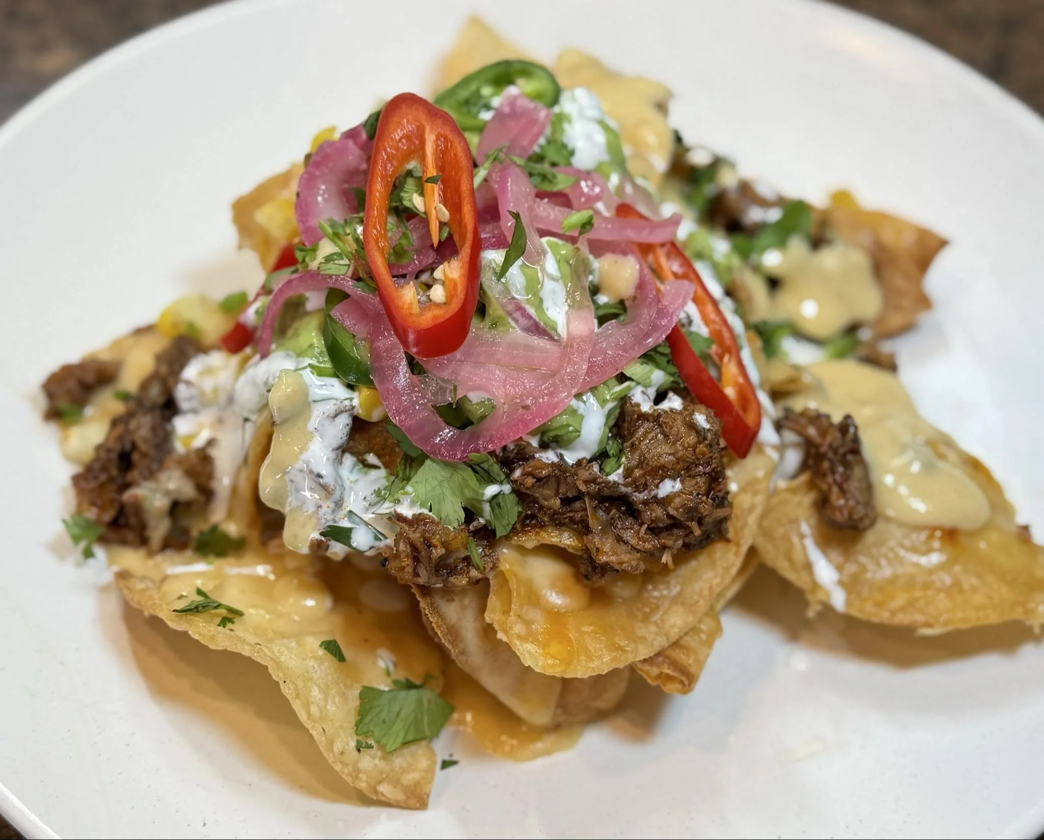 This isn’t your average snack - it’s a full-on flavor bomb made with homemade chips, creamy cheese sauce, roasted corn, leftovers, and bold toppings. Perfect for feeding a crowd or flexing your kitchen confidence.