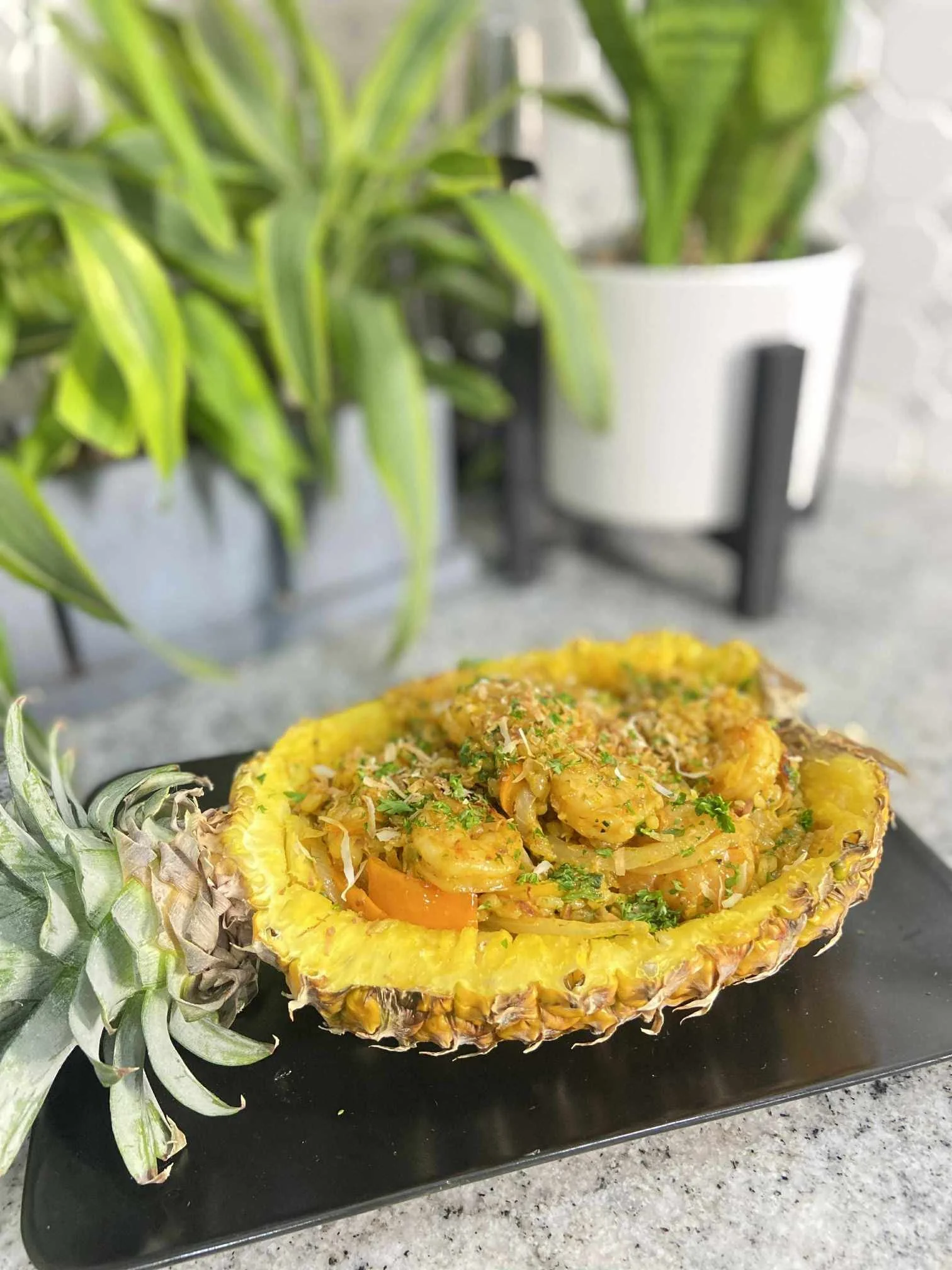 A savory, comforting shrimp and rice dish simmered with aromatics and finished with rich coconut milk. Perfectly paired with fried ripe tomatoes and fresh lemon slices.