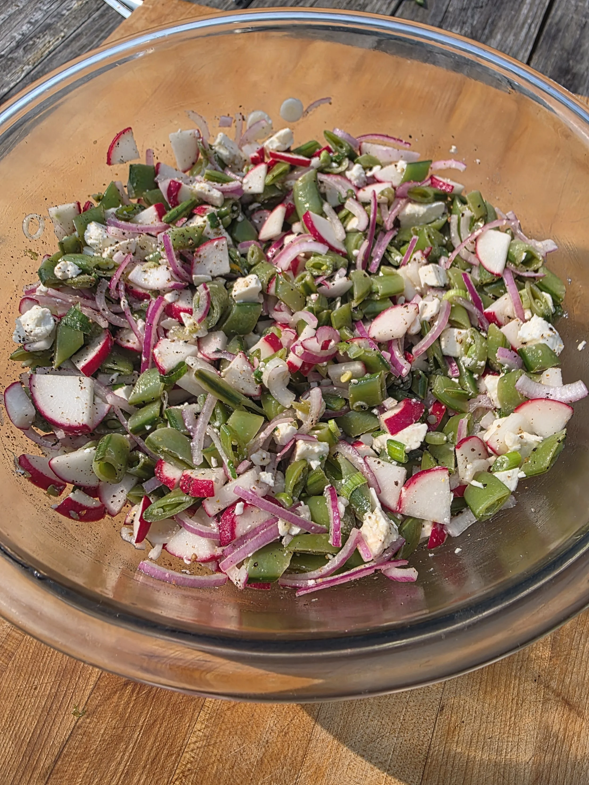 This vibrant salad is a perfect side dish for spring and summer, offering a delightful crunch and bright flavors. Snap peas, radish, red onion, and feta sing together in harmony with this balanced lemon-sherry vinaigrette