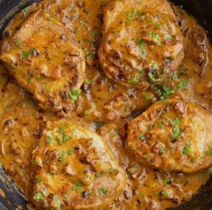 A cozy, family-style baked pork chop dinner with tender meat, creamy gravy, and fluffy stuffing all in one pan. Simple, comforting, and perfect for busy nights