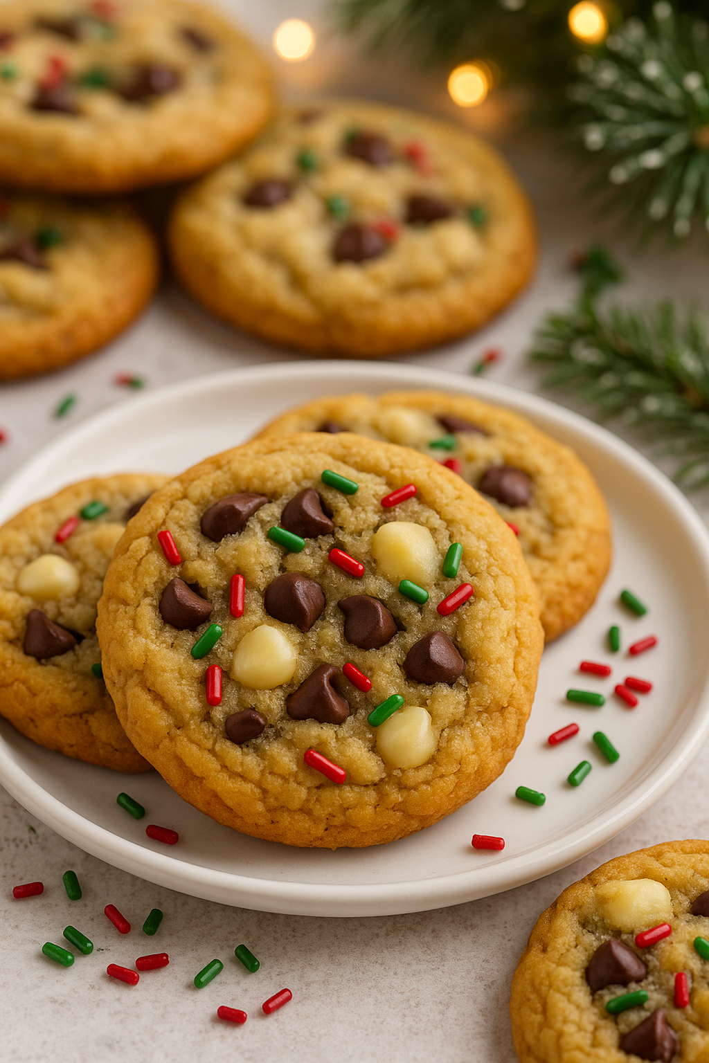 Soft, chewy, and loaded with holiday cheer, these chocolate chip cookies sparkle with festive color and flavor