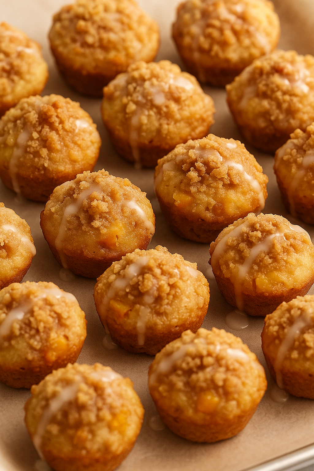 Soft, fluffy donut holes filled with peaches, topped with a sweet crumbly streusel, and finished with an optional glaze. These little bites taste just like peach cobbler in a fun handheld form