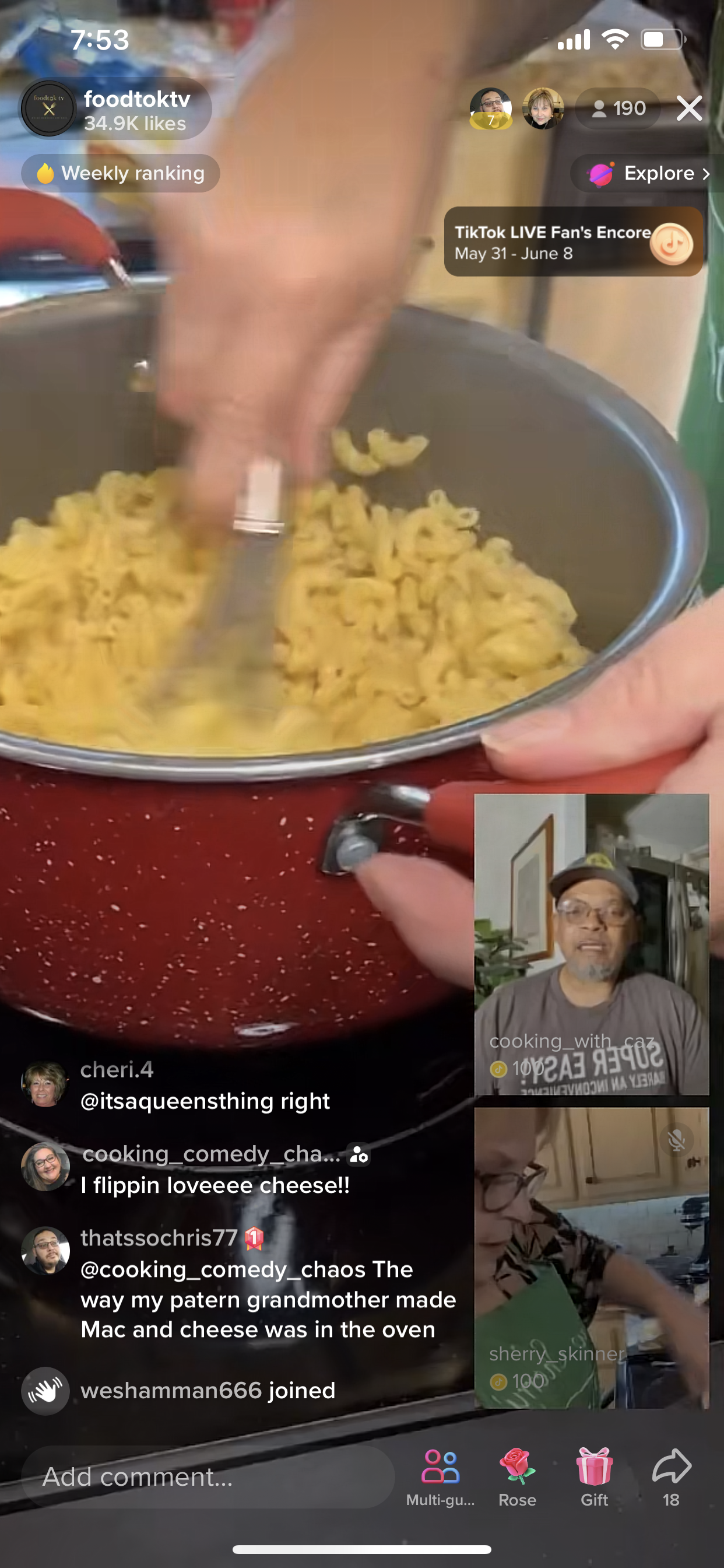 Our very own @Sherry_Skinner shared with her versions of @FoodtokTV fan recipes including her spin on C3’s popular version of Mac & Cheese, and Fried Chicken using a mayonnaise binder and her favorite seasoning blends; including team FoodtokTV favorite from @shoresmokeseasonings and a sweet ending of ‘no cook” Peanut Butter pie.
