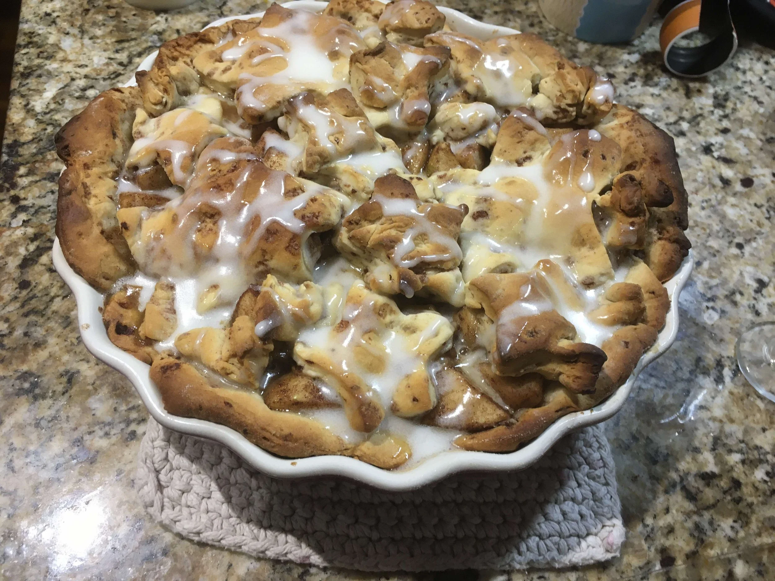 This apple pie is nothing like you've had before! Cinnamon rolls make the crust, then it's filled with apple pie spice and Granny Smith Apples. You know it's so good!