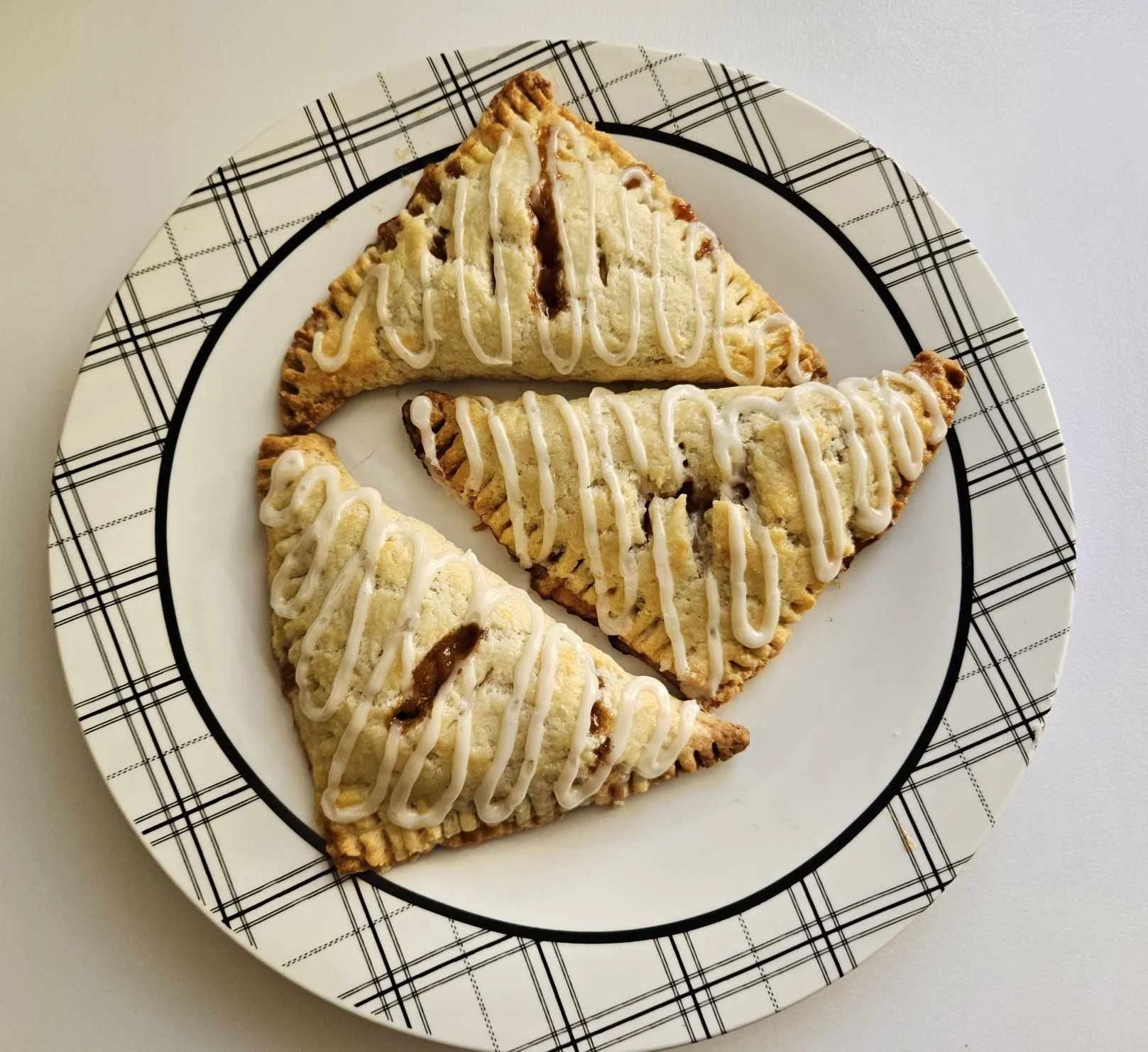 Red Wagon Bakery's Apple Turnovers are baked from scratch with a flakey pie crust, apples simmered in butter and cinnamon, baked until golden, then topped with a glaze
