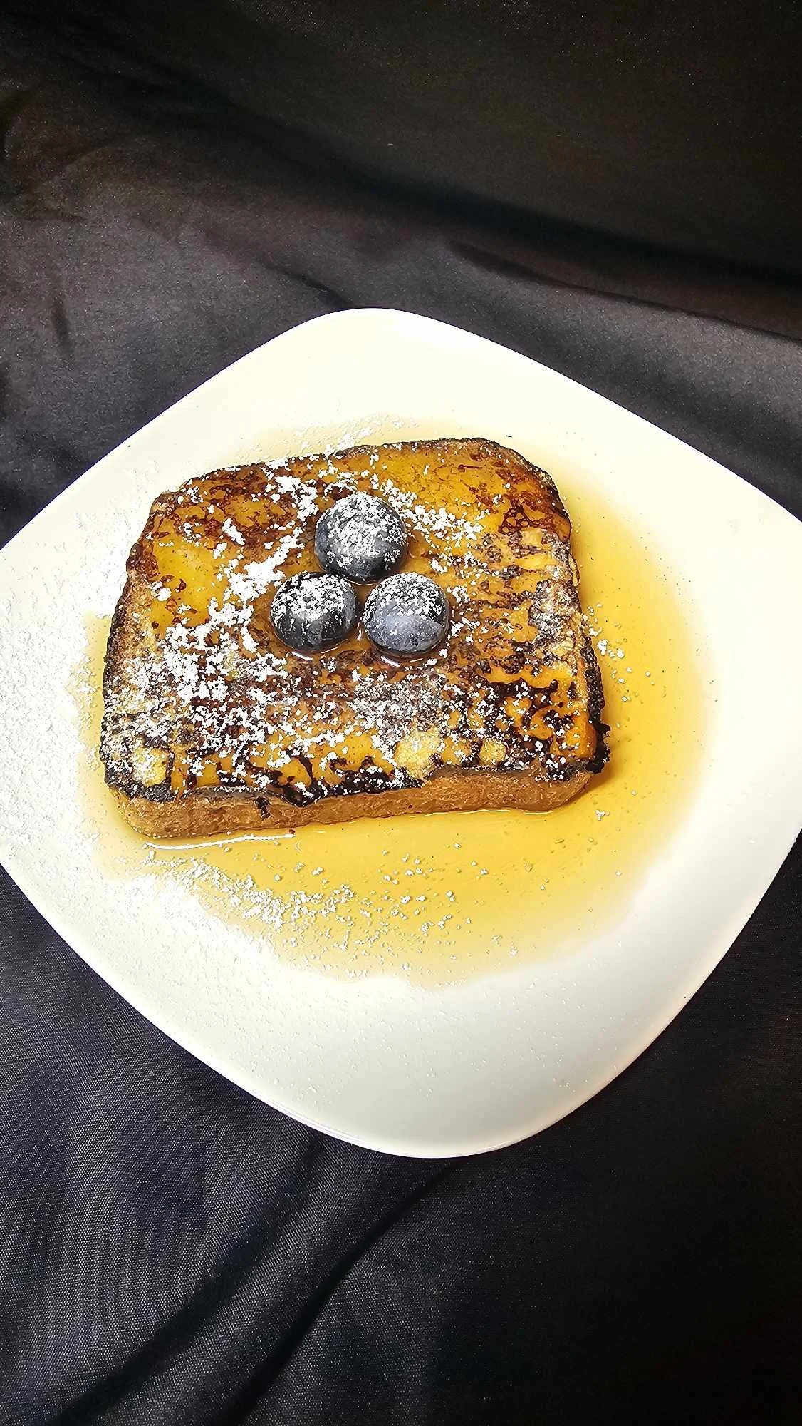 Rich, custardy French toast topped with fresh berries and a warm cinnamon-vanilla sauce—perfect for brunch or dessert.