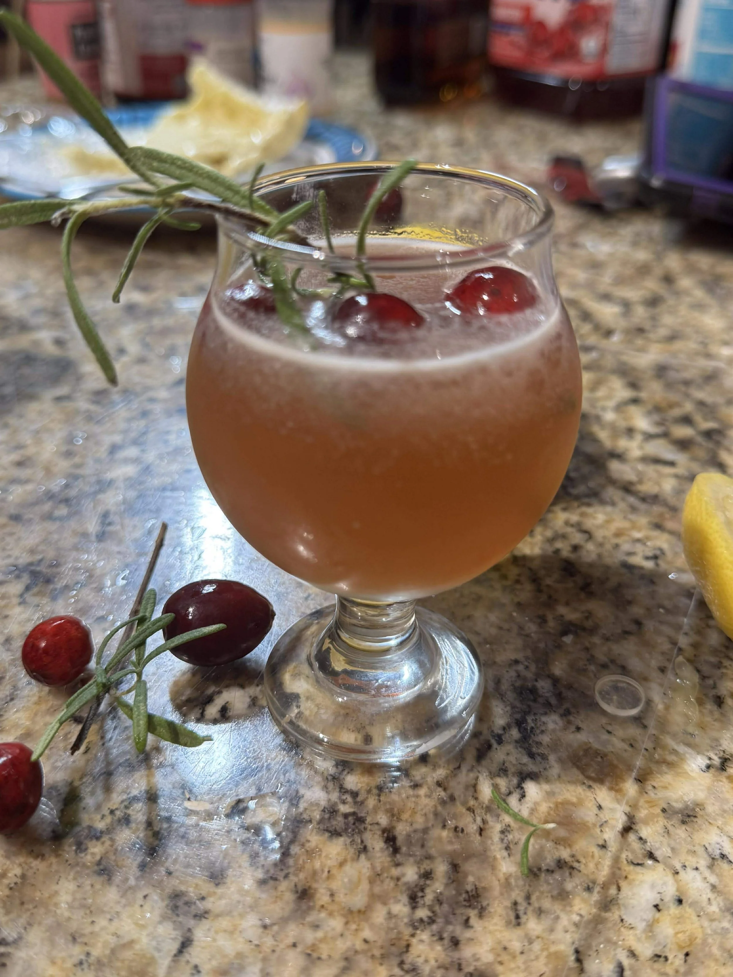 A smooth, festive, ruby-red cocktail with a bright citrus kick, subtle sweetness, and a beautiful herbal finish
